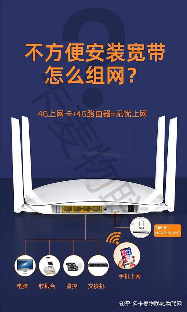物联网流量卡4G插卡路由器的工作原理就是路由器里面内置性能稳定的4G通讯模块,支持移动、联通、电信的4G卡,可以把4G网络转网口转-有线路由器 4g转wifi转有线,不仅可以连接手机,同时也可以连接电脑。